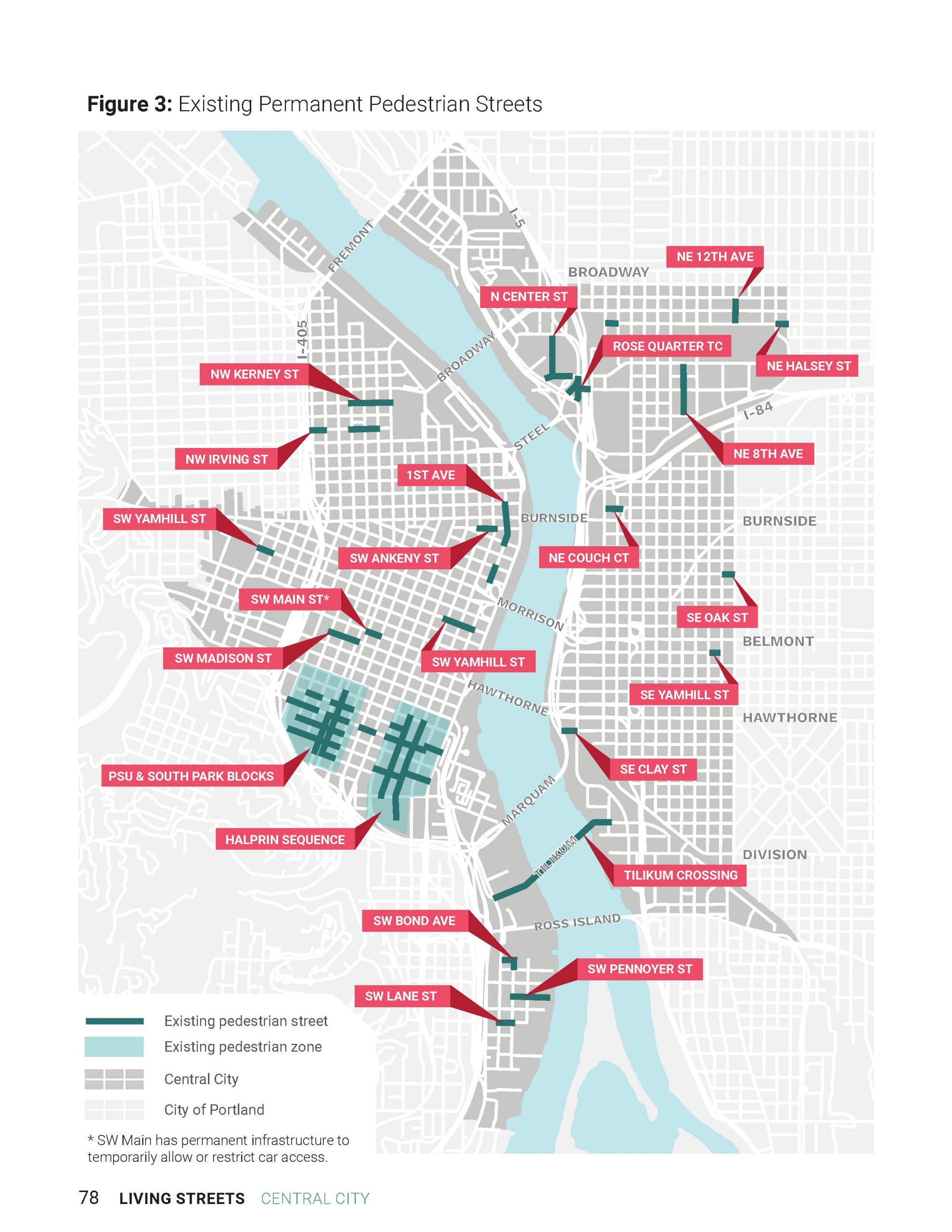 I worked with five highly talented others on a project submitted by the Portland Bureau of Transportation (PBOT): “Carfree Central City,” where PBOT said they “would like to identify and evaluate potential opportunities for new carfree streets and places in our Central City area and identify strategies for implementing these spaces in a temporary, interim, or permanent fashion.”