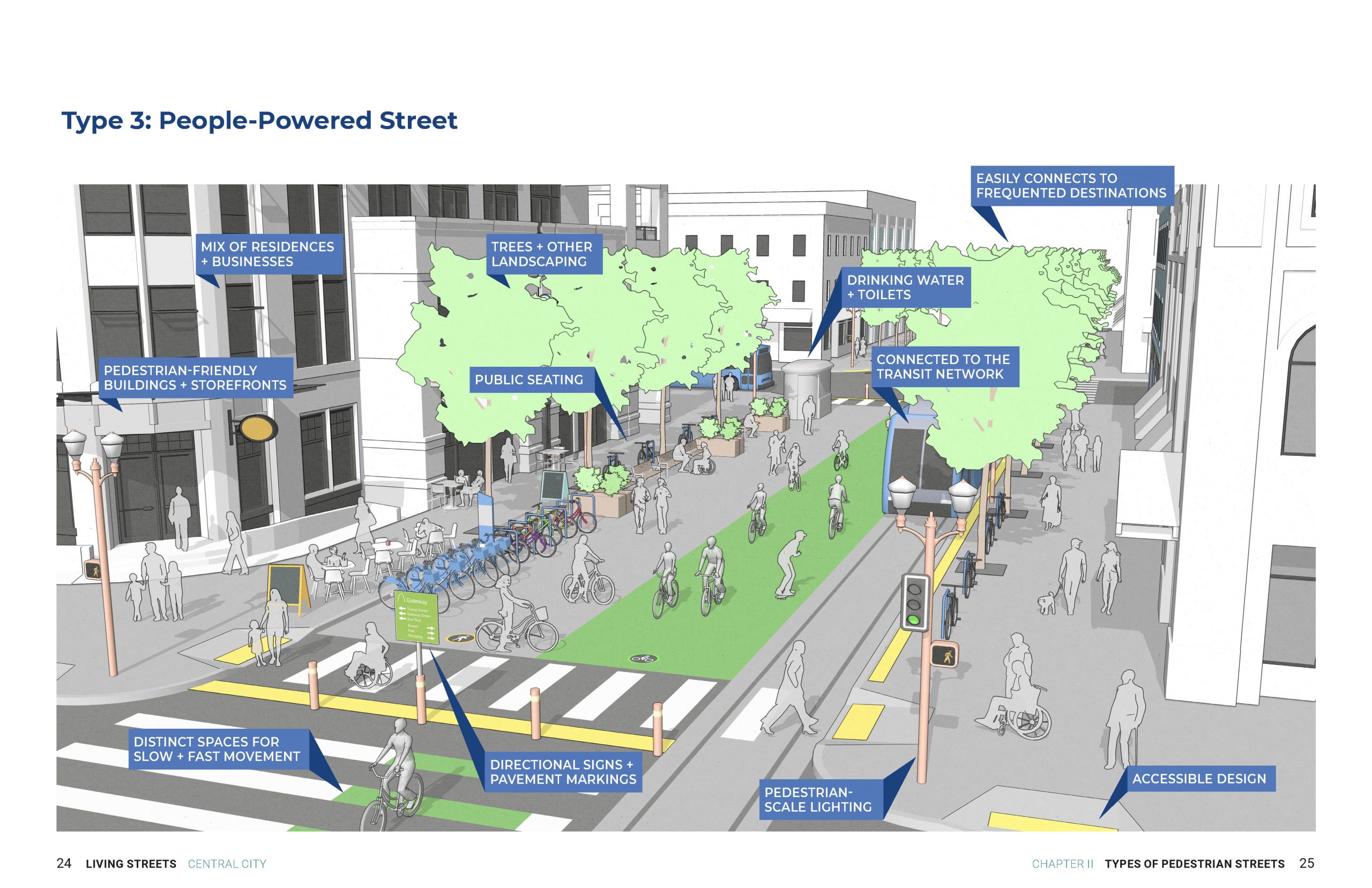 Our final plan, which we renamed “Living Streets” to decouple from the automobile, was built on: